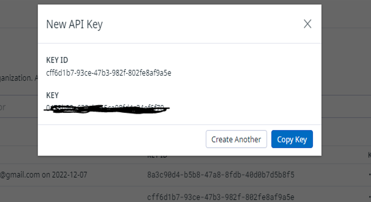 Please copy the value of the newly created key which will be used in the next step for the SIEM integration in the Beyond Identity console