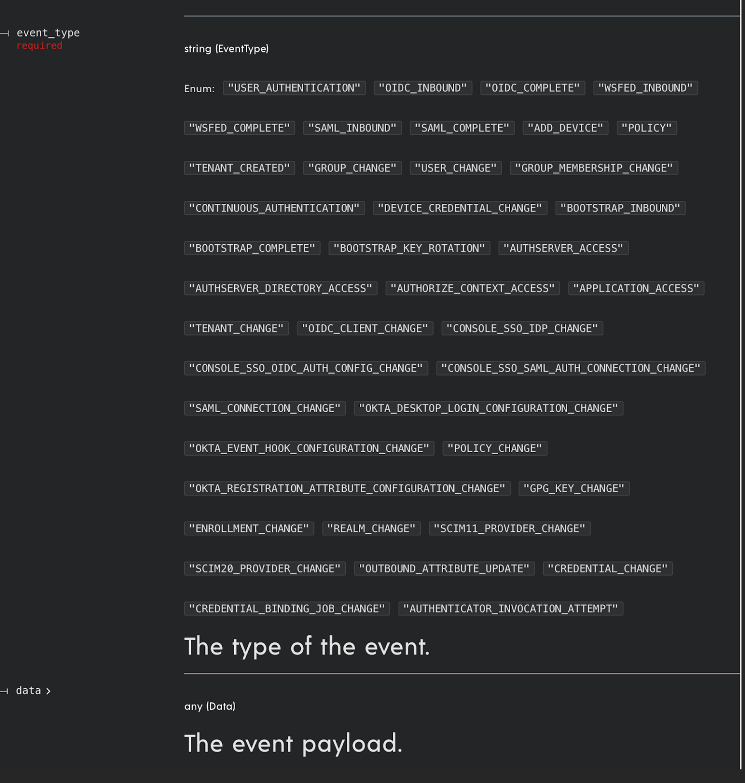 event_type lists all the events