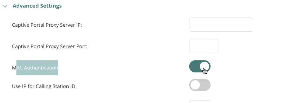 - Under Advanced Settings enable Mac Authentication for caching the mac-address.
