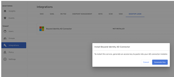 Login to Beyond Identity Admin Console and click on Integrations from the menu.