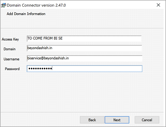 - Username: service account name used to run the Beyond Identity Service (e. g. biservice@beyondadfs.com)