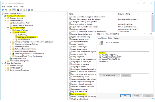- Navigate to Computer Configuration > Windows Settings > Security Settings > Local Policies > User Rights Assignment.