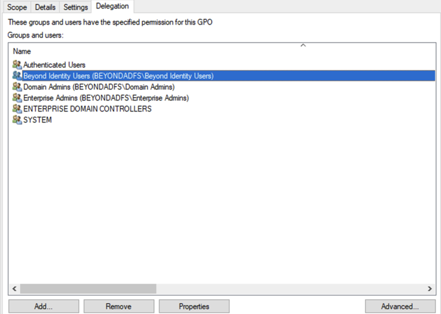 Follow the steps below to apply the GPO Policy to “Beyond Identity Users” Group: