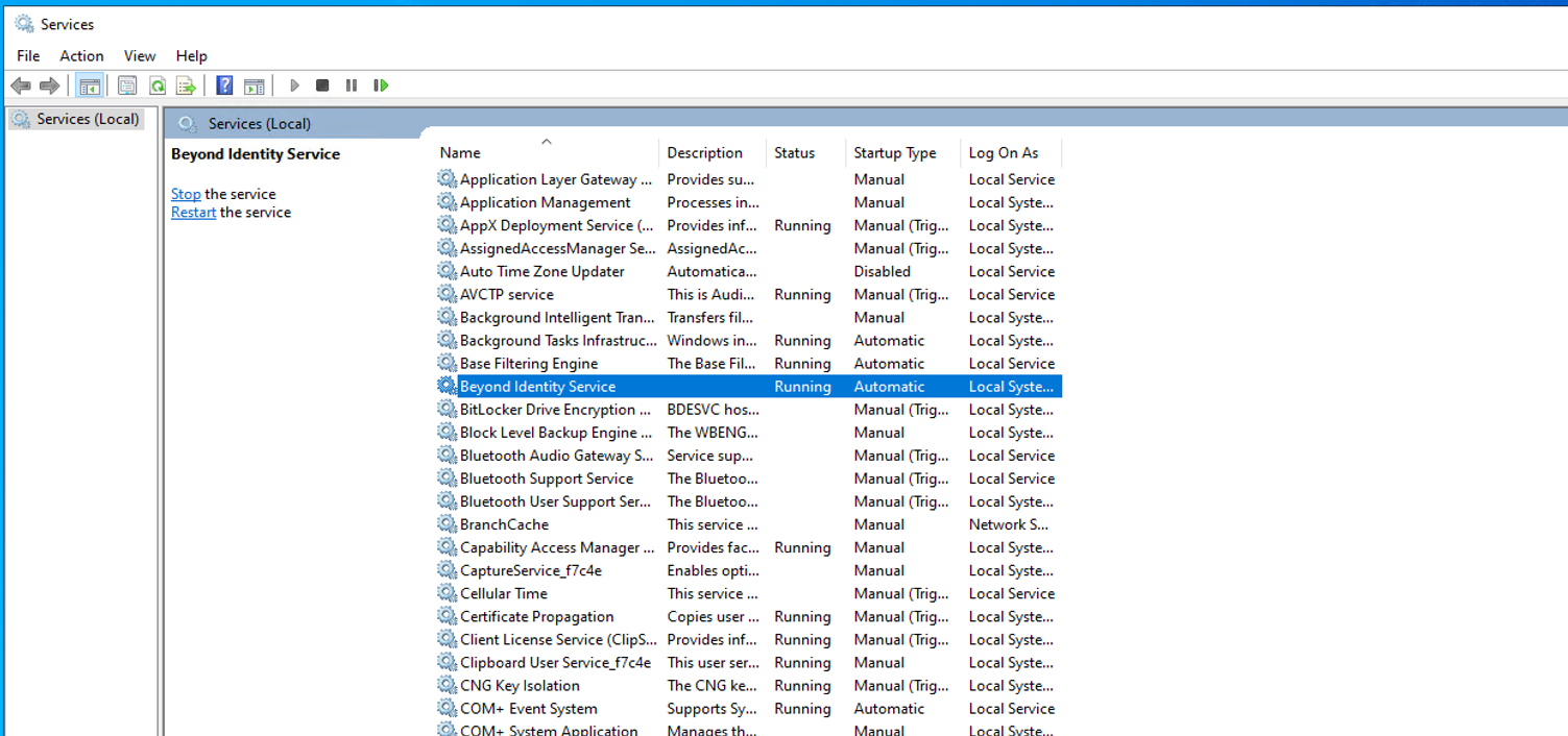 - Ensure “Beyond Identity Service” service is running on the client before moving to the next step.