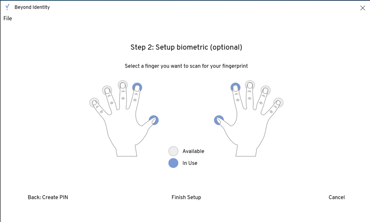 - Optionally, enroll fingerprints for biometric login and then click “Finish Setup”.