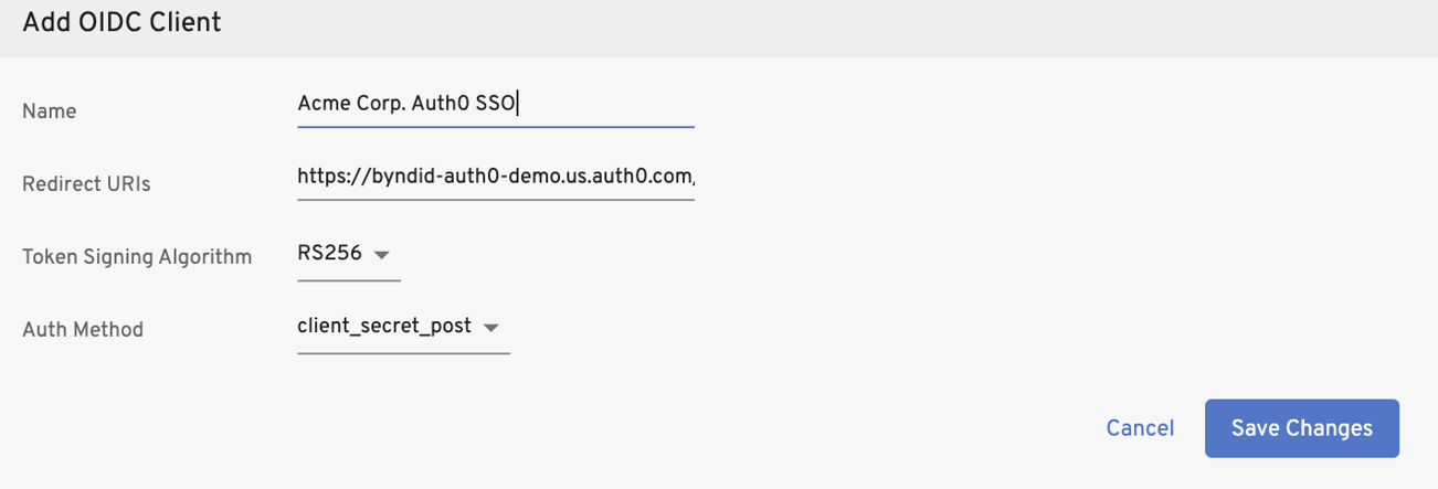 - Allowed Callback URLs = https://admin.byndid.com/auth/callback