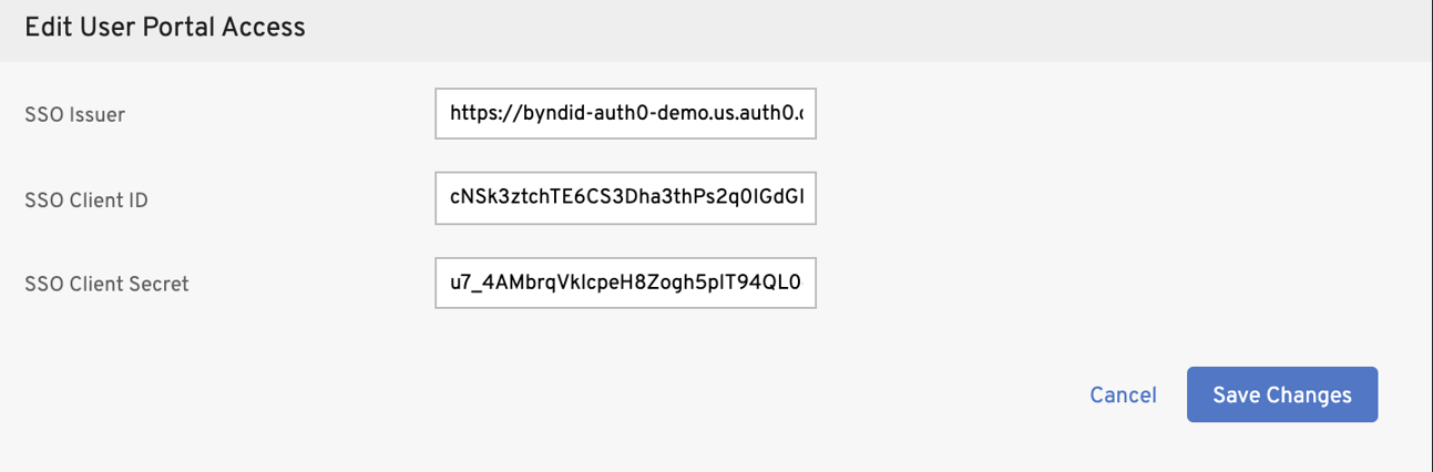 Beyond Identity User Portal Application credentials SSO Client Id SSO Client Secret |