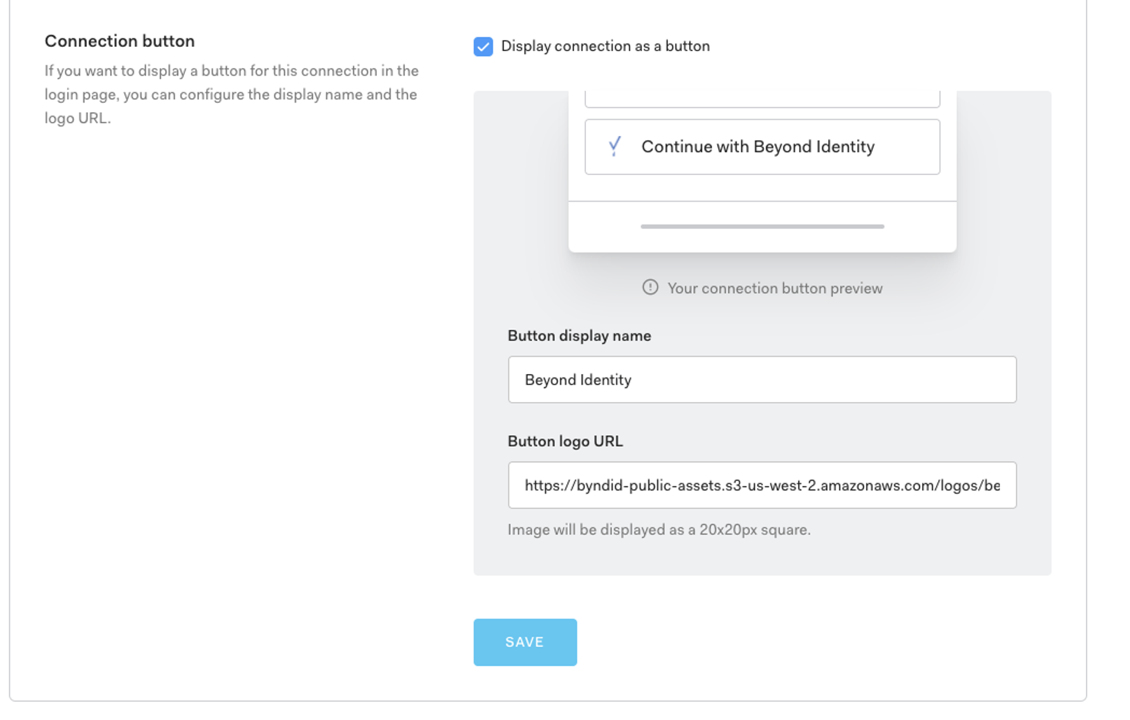 - Add the following url for the ‘Button Logo URL’ - https://byndid-public-assets.s3-us-west-2.amazonaws.com/logos/beyondidentity.png