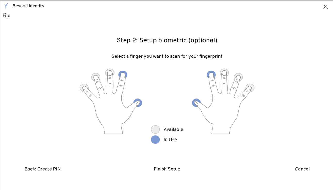 - Optionally, enroll fingerprints for biometric login and then click Finish Setup.