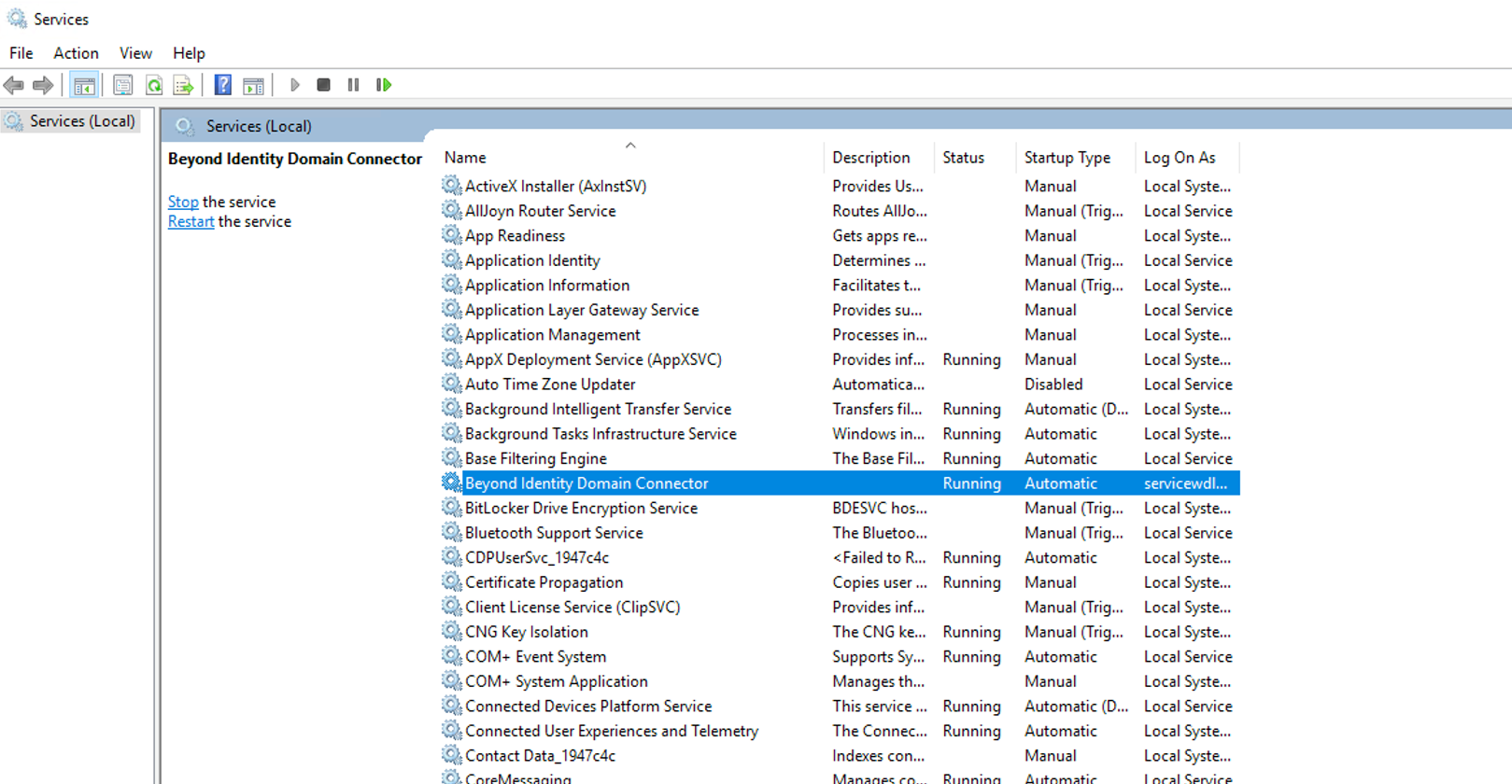 - Once the installation is complete, make sure the service Beyond Identity Domain Connector is running.