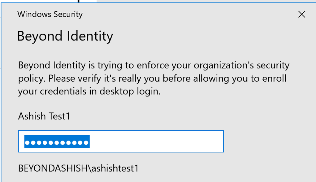 4. Enter your domain password to start enrolling in Beyond Identity’s Desktop Login service.