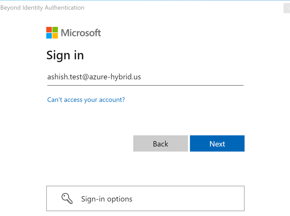 - Choose the Beyond Identity login option.