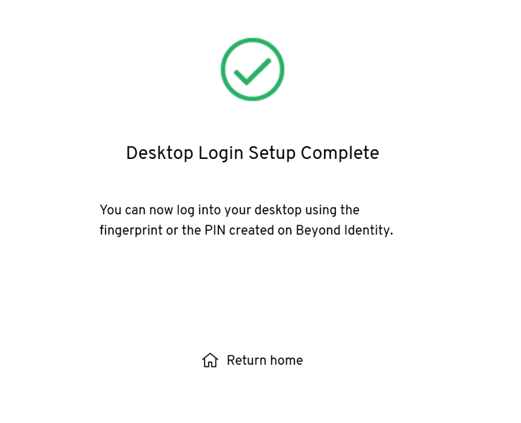 - Wait until a confirmation dialog displays. You are now enrolled in Windows Desktop Login.