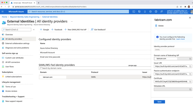 Configure Beyond Identity as the federated identity provider for your primary domain by following the steps outlined in the main section of this guide.