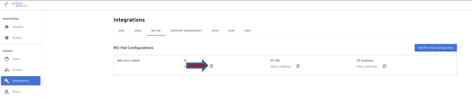 - Configure WS-Fed in the Beyond Identity Admin Console