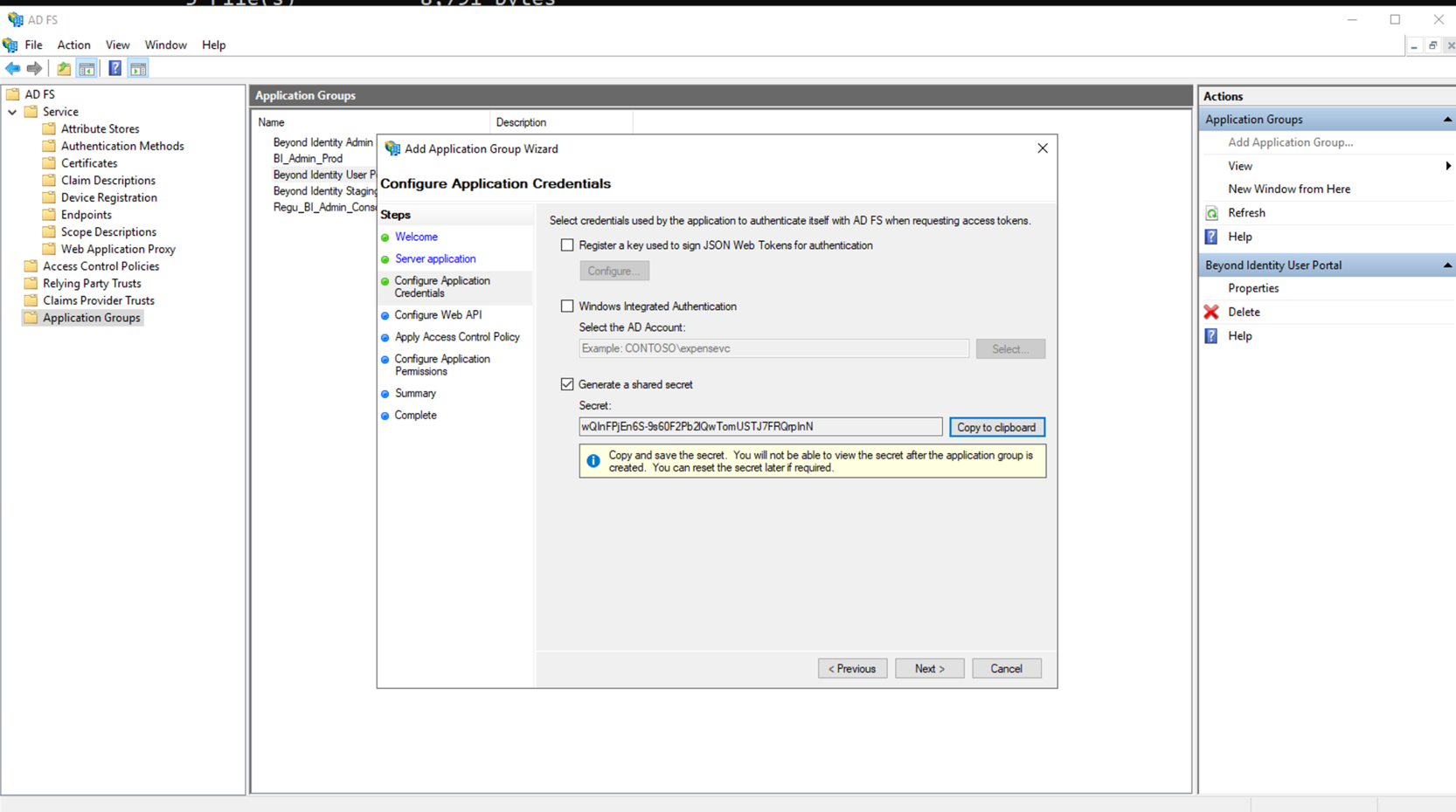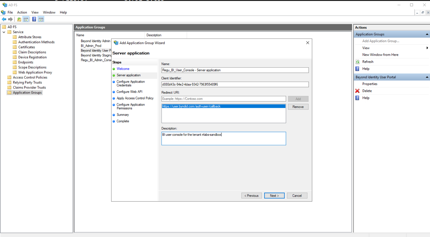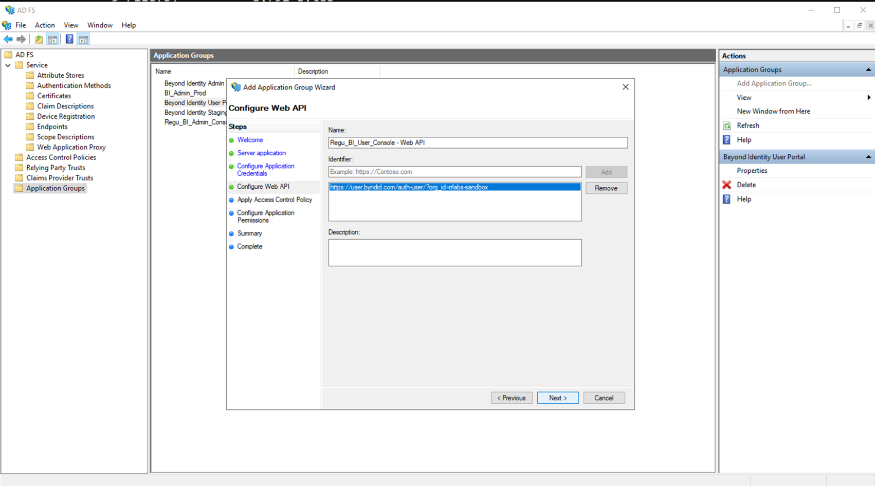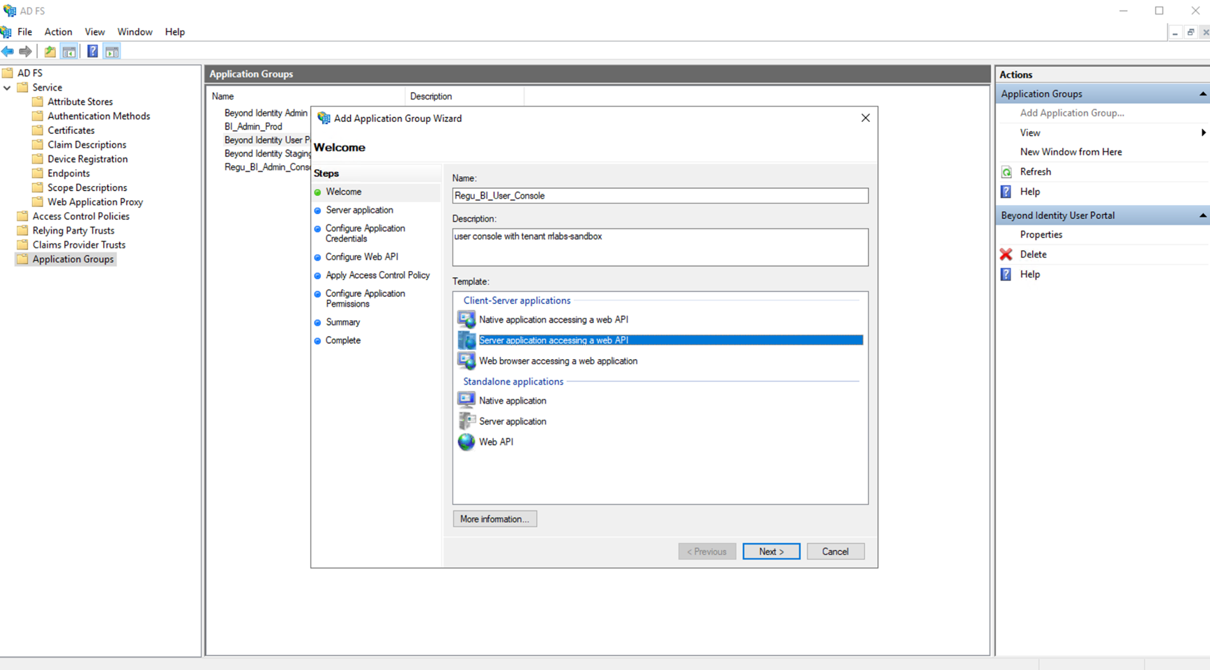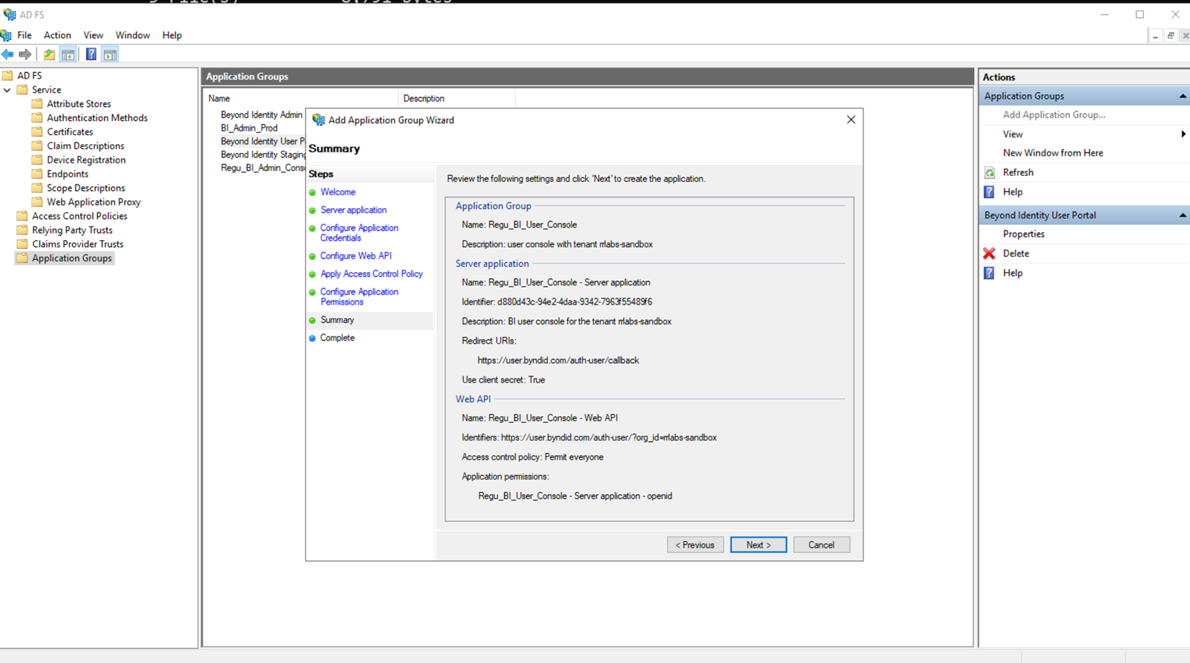 - Add Beyond Identity User Console as an Application Group to customer ADFS