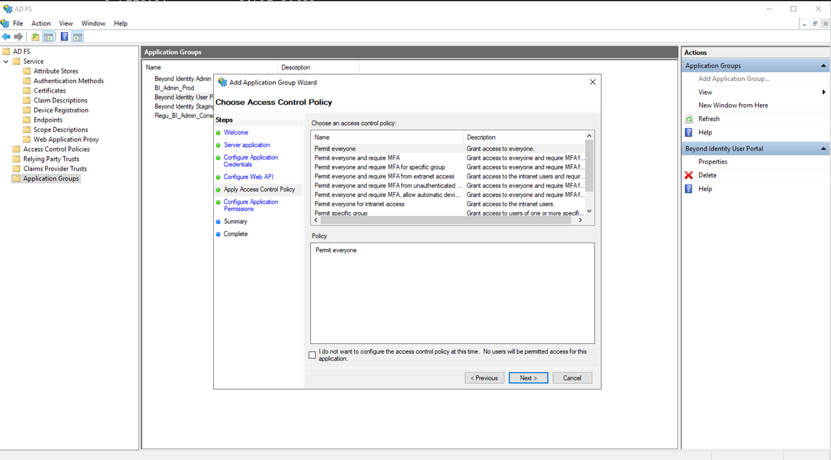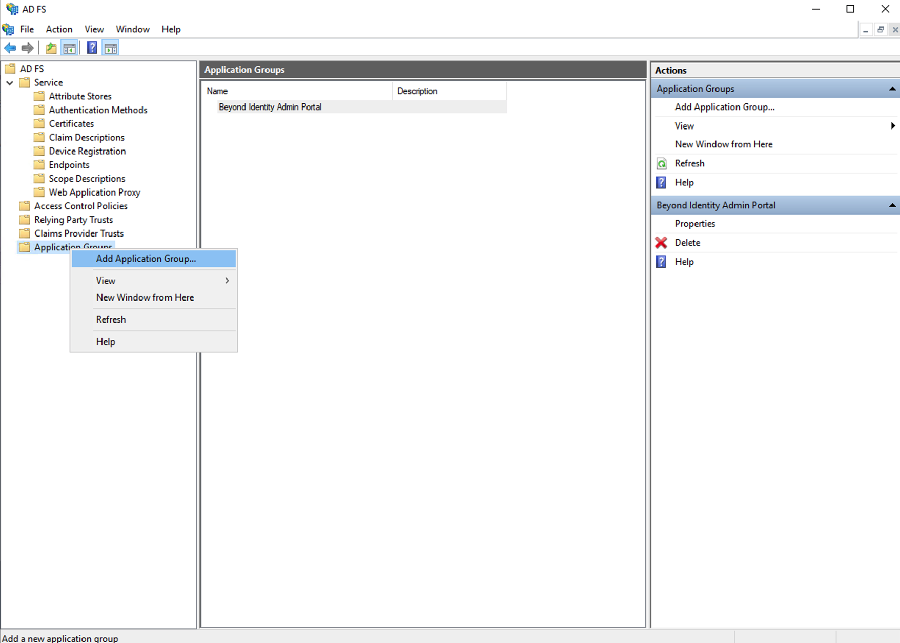 Add Beyond Identity Admin Portal (or any protected application) as an Application Group to ADFS