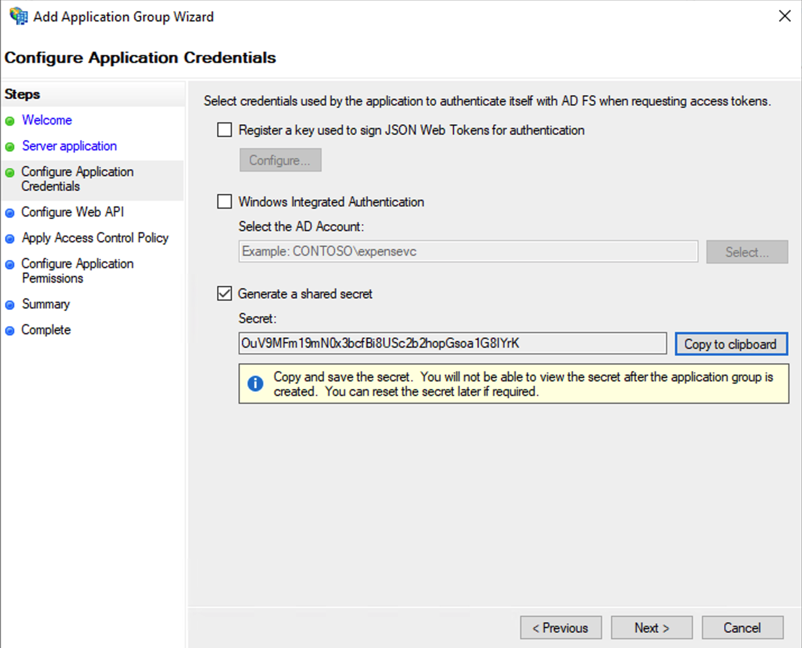 - Click ”Generate a shared secret”. Copy this value. This value is the OIDC Client Secret used for the Beyond Identity Admin portal configuration. Click “Next”.