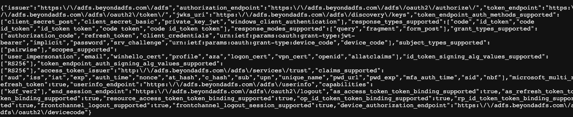 For example https://adfs.beyondadfs.com/adfs/.well-known/openid-configuration