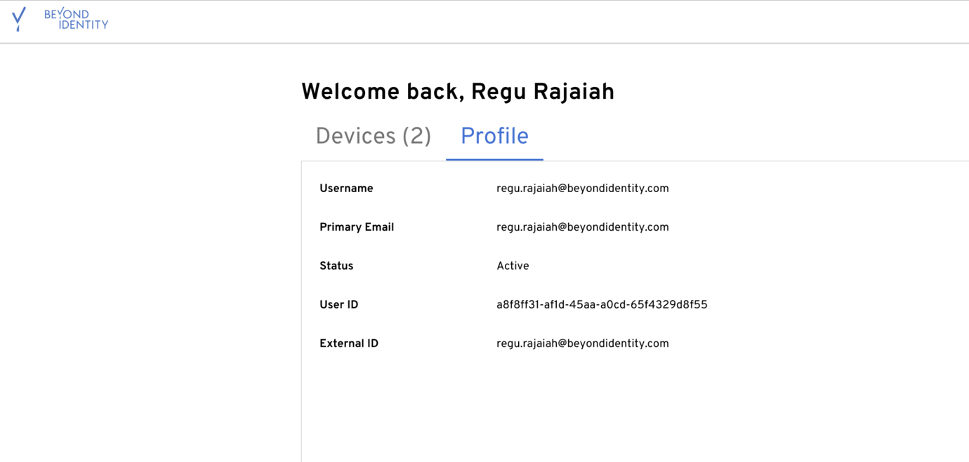- Click on “BI_Passwordless”. It should launch platform authenticator and after successful authentication you should see a similar screen.