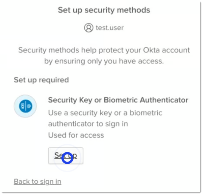 Click Set up. A Set up security key or biometric authenticator dialog appears.