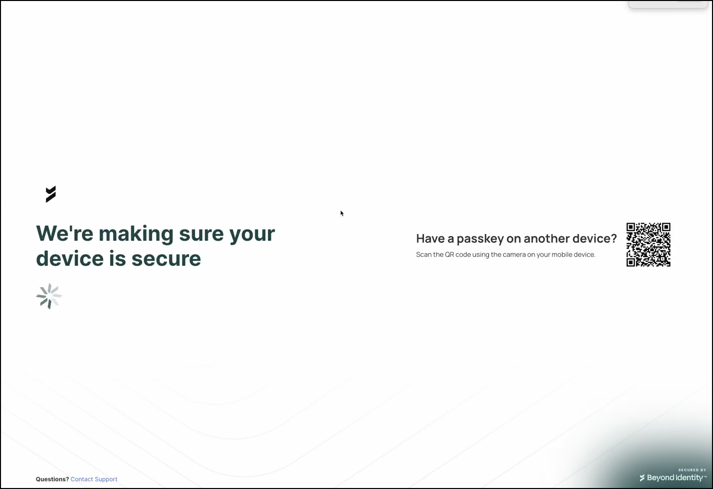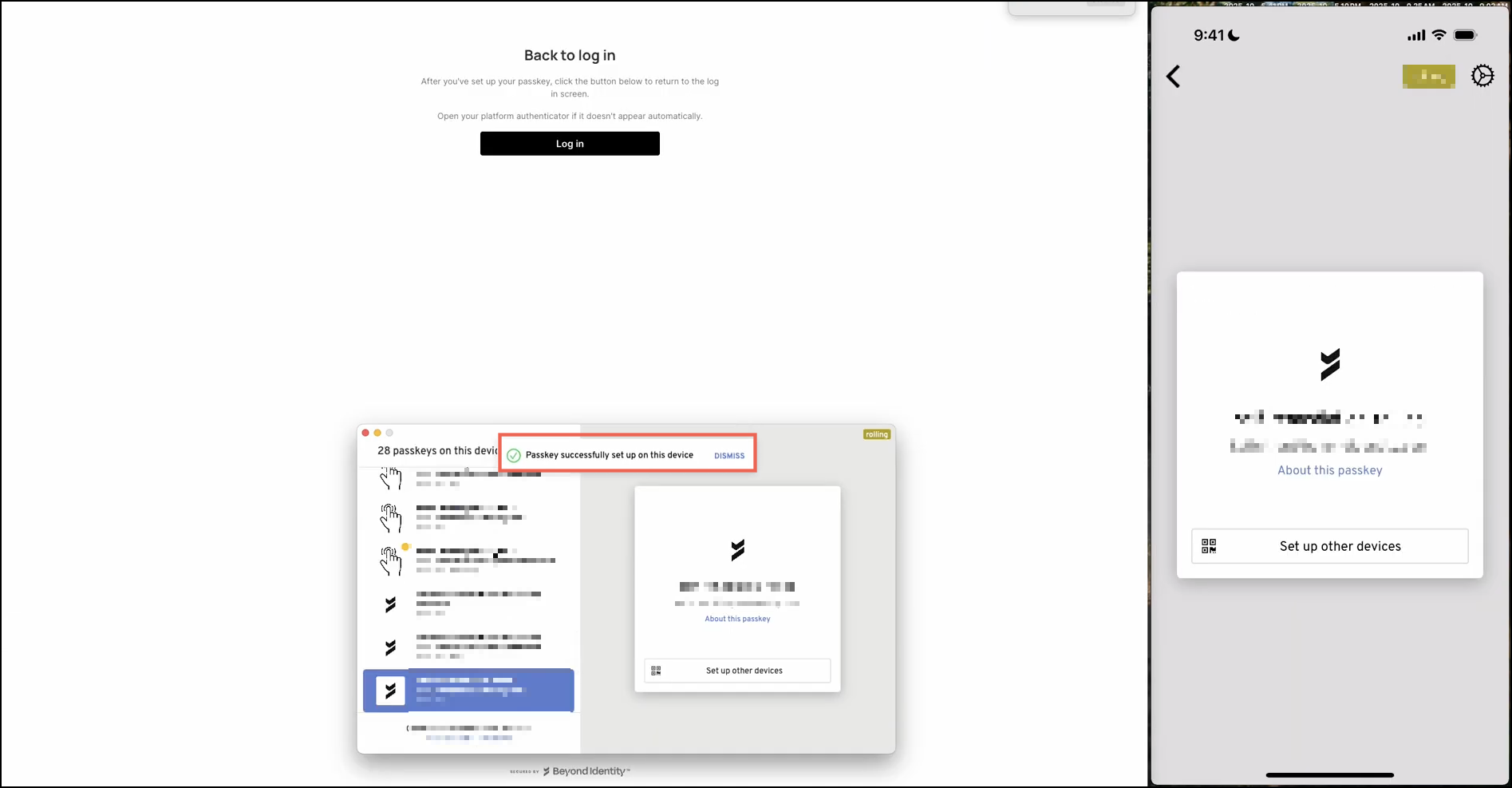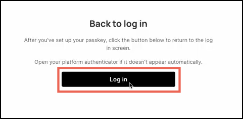 The login flow begins again, this time with the passkey successfully registered on your current device.