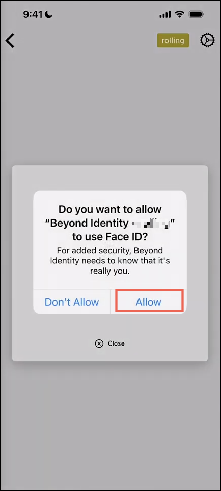 When prompted, allow Beyond Identity to use Face ID or your device’s biometric method to confirm it’s really you.