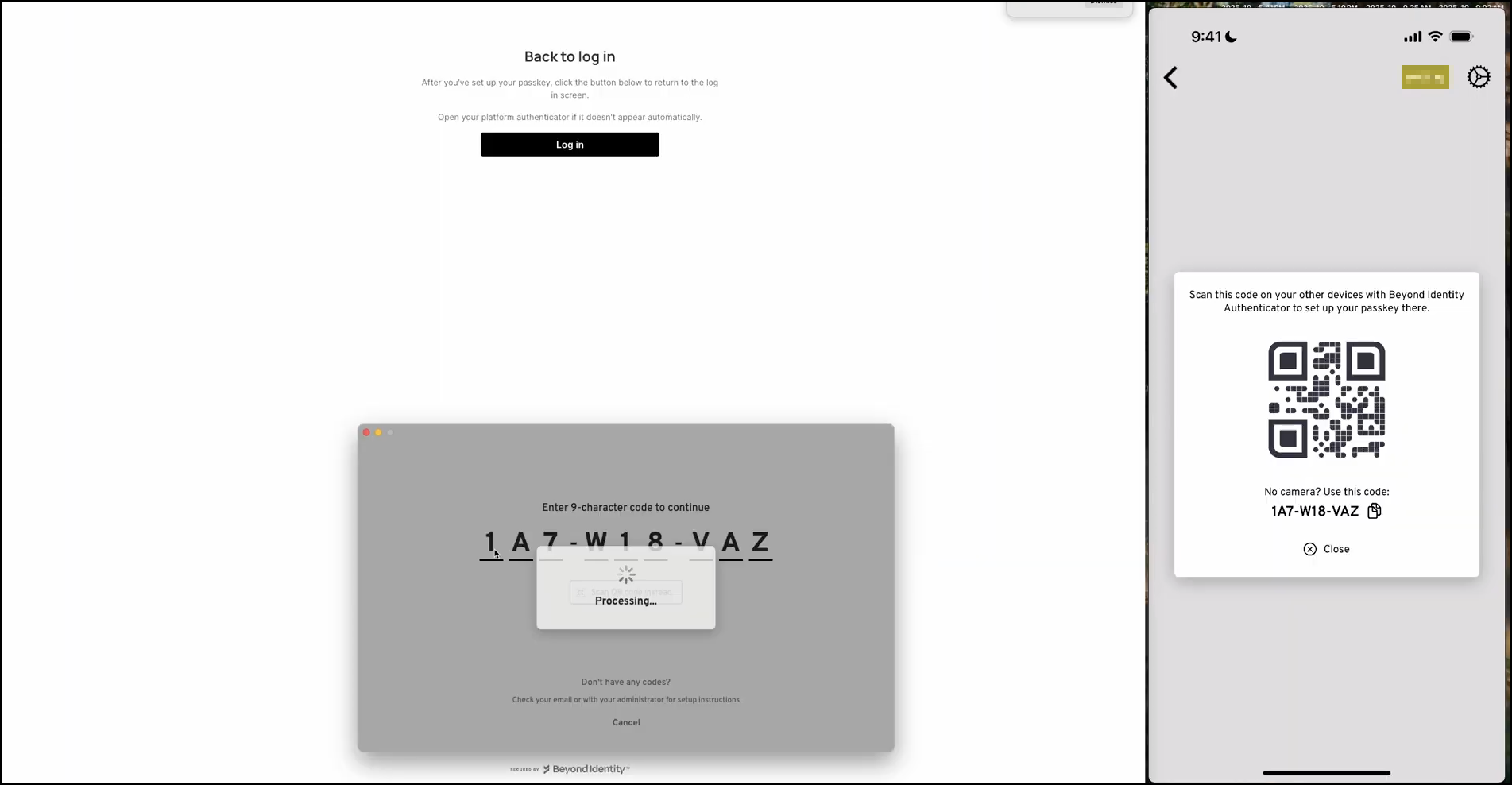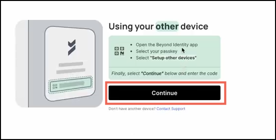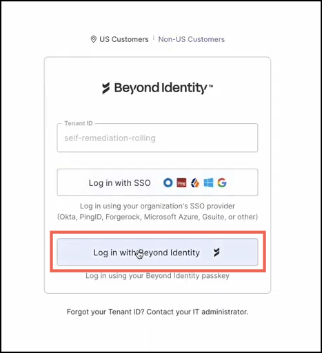 The Self-Remediation feature enables users to recover access when their current device does not yet have a Beyond Identity passkey configured.
