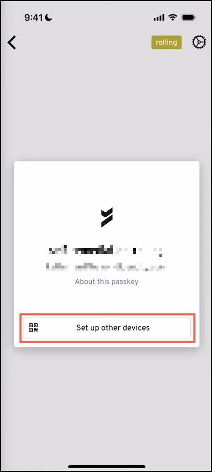 You’ll see an error stating the passkey is missing. Click Set up passkey with another device to extend your passkey on this device.