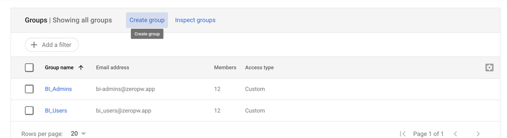 - On the Groups page click on “Create group”.