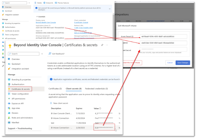 - Copy the Application (client) ID and Directory (tenant) ID. These will be needed in a later section when you configure Beyond Identity.
