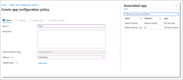 - Select the appropriate platform (iOS/Android) and the Beyond Identity App as the associated App.