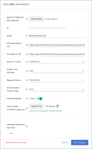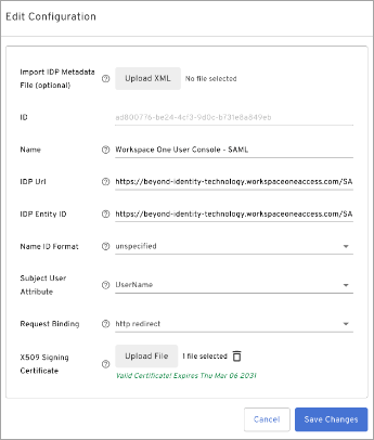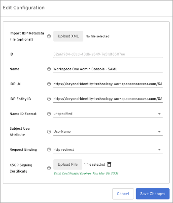 To configure Beyond Identity as the IdP in VMware Access Manager, follow the steps below. Once these steps are taken, you will be ready to enable Beyond Identity for test users.