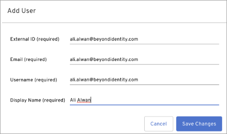 Now, go to the Beyond Identity Admin Console and create a new user.