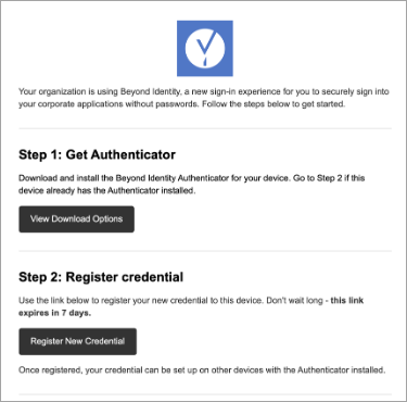 Enrolled users will receive an email from Beyond Identity welcoming them to the new Identity Provider.