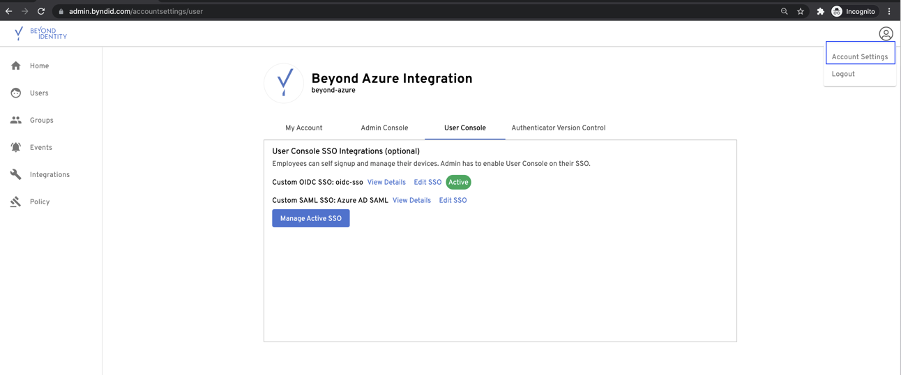 - Set up Beyond Identity Admin Console and User Console applications in Azure AD.