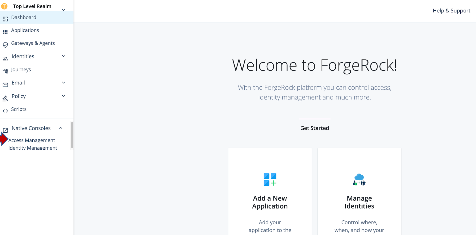 Sign into your Forgerock with the platform admin, by default the login id is amadmin and password.