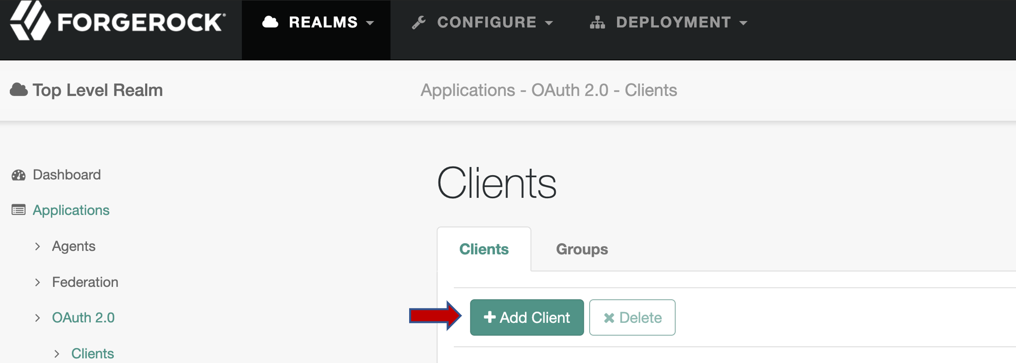 In the access management console, navigate to Applications=>OAuth 2.0=>Clients and click “Add Client”