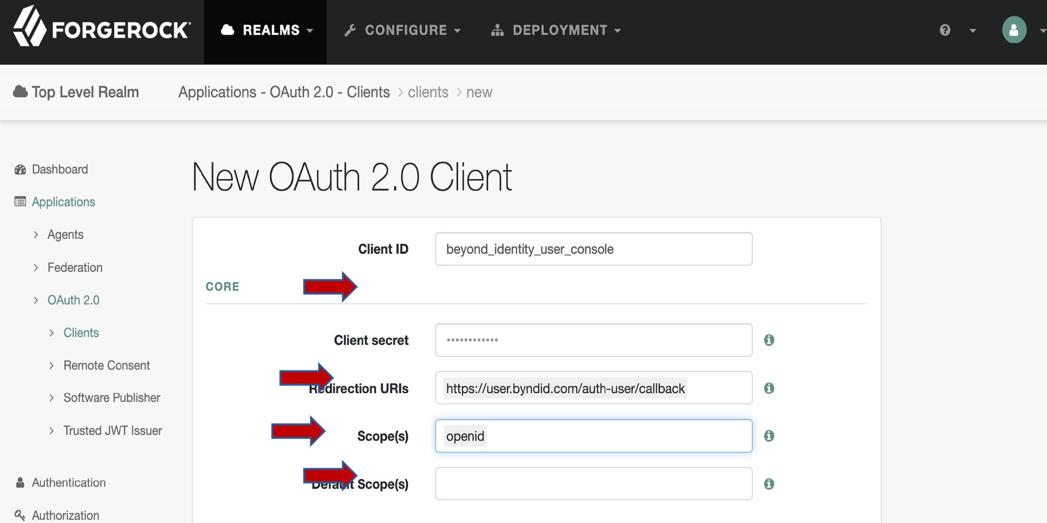 Step 4.1: Create Beyond Identity User Console in Forgerock