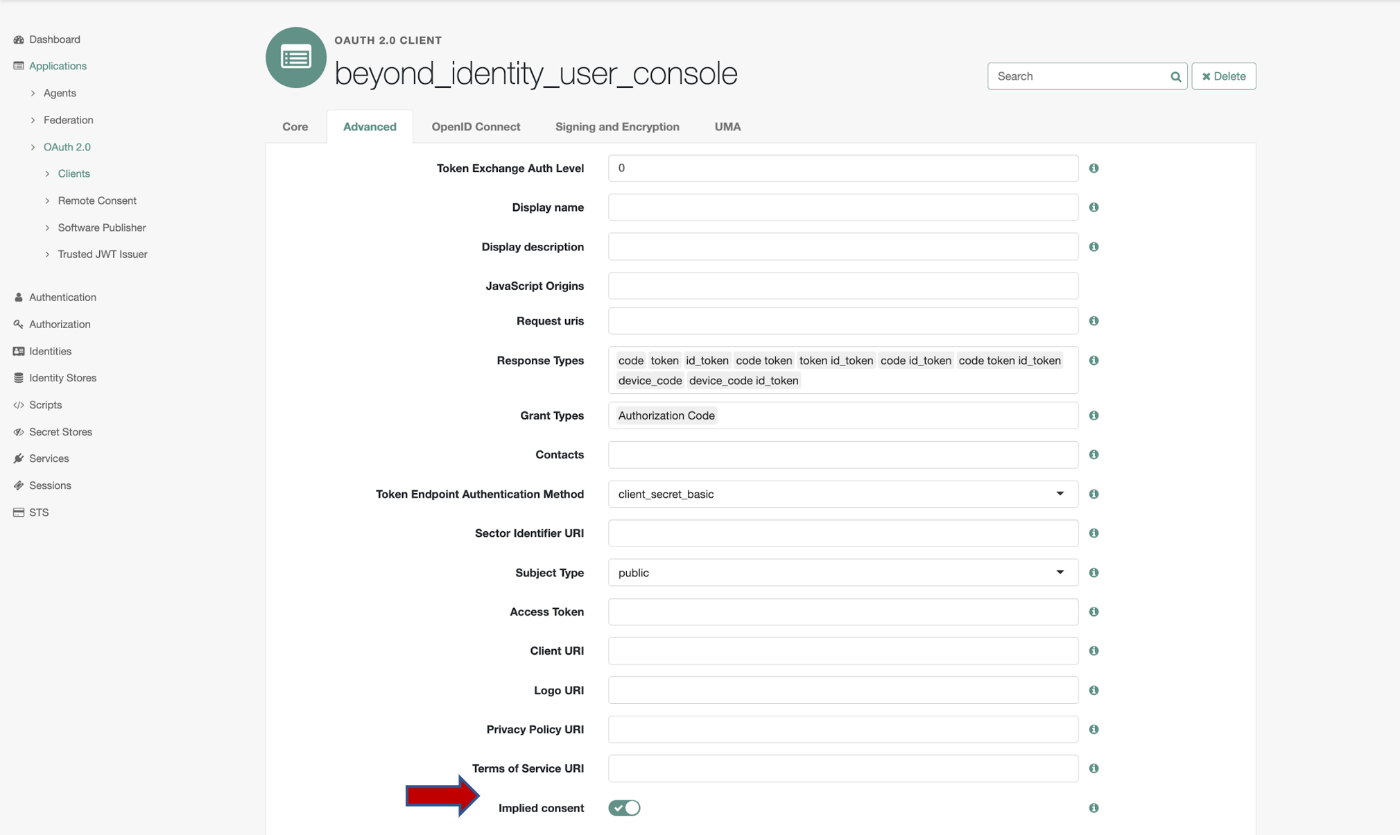 - Client ID: beyond_identity_admin_console, note down this value and provide to Beyond Identity SME
