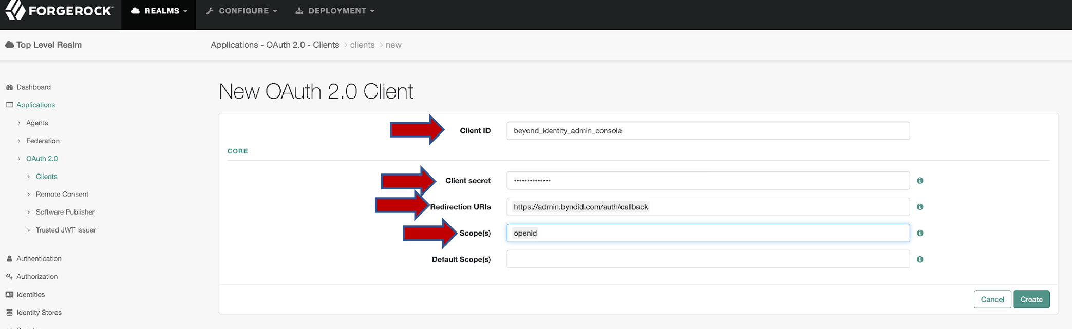 Step 2.1: Create Beyond Identity Admin Console in Forgerock