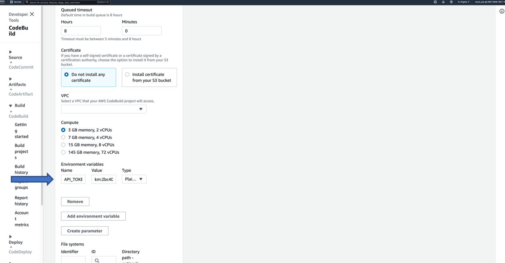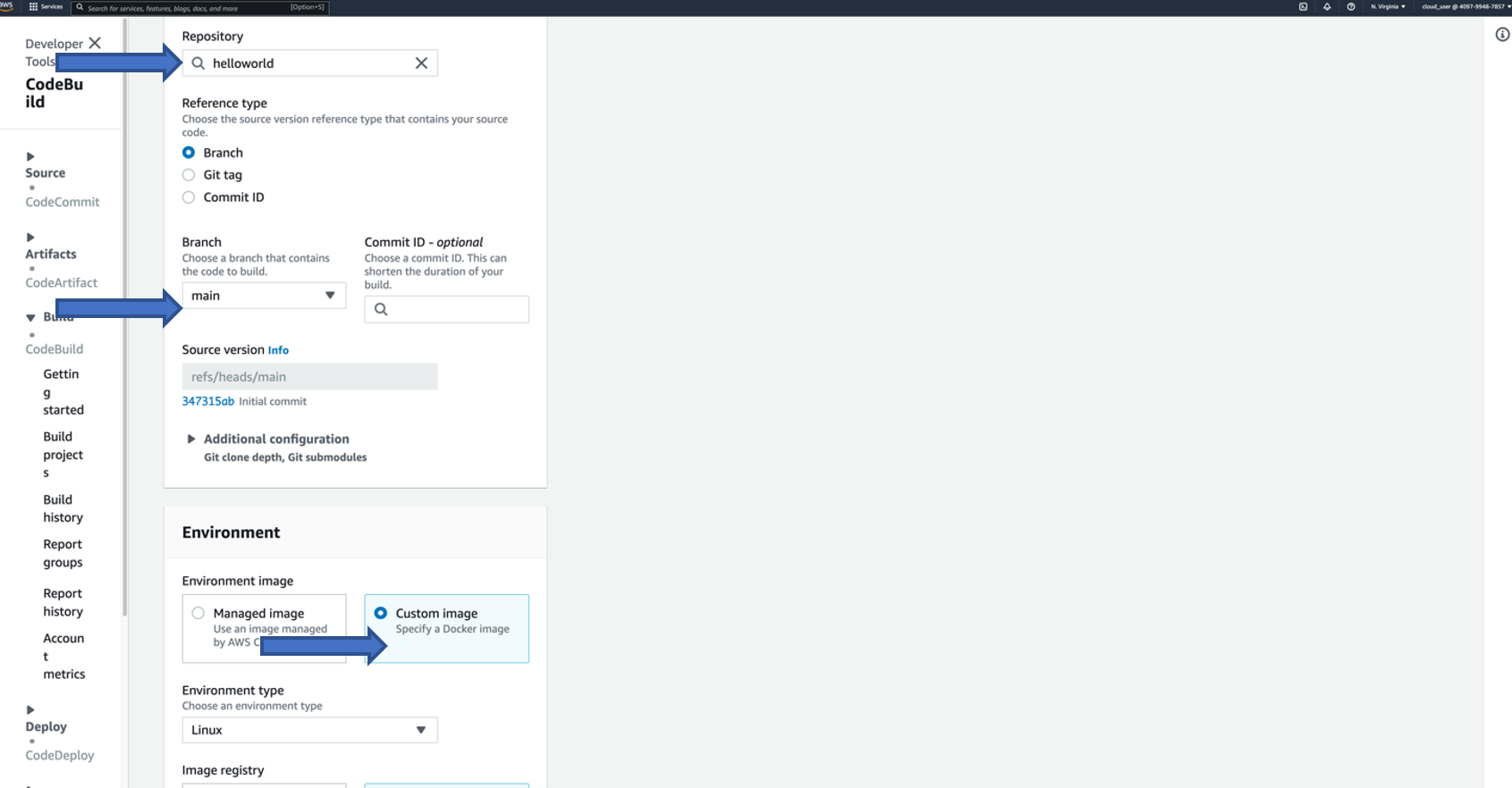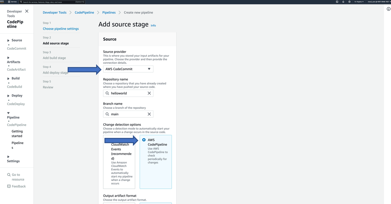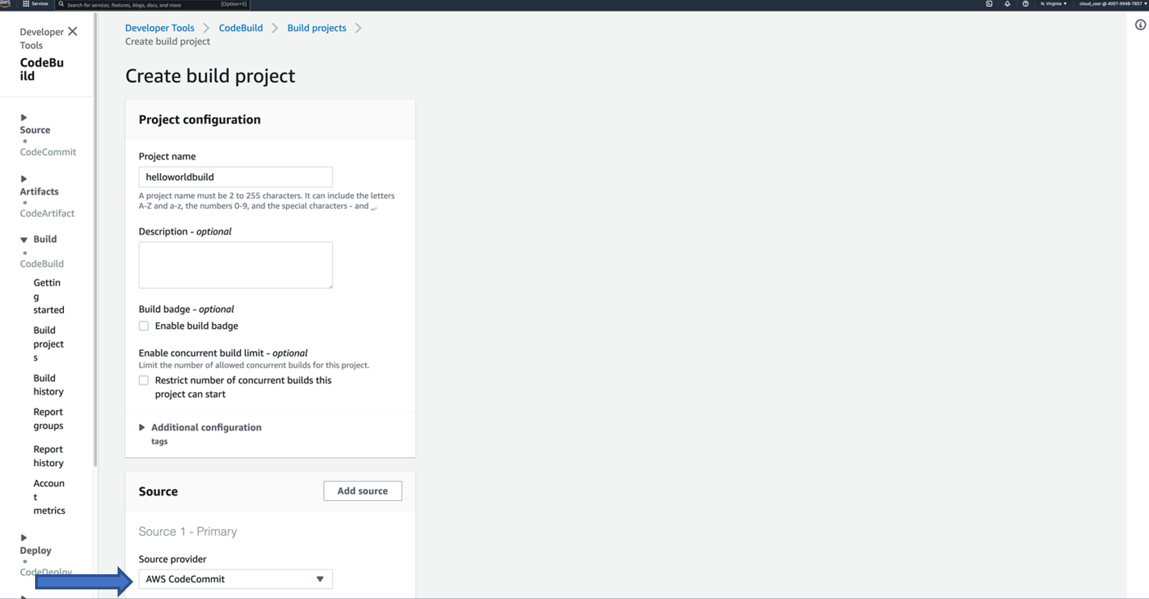 - Source provider: AWS CodeCommit
