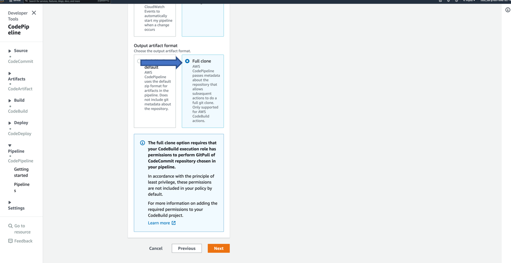 - Under “Output artifact format”, choose Full Clone. This choice makes the metadata available to Beyond Identity container.