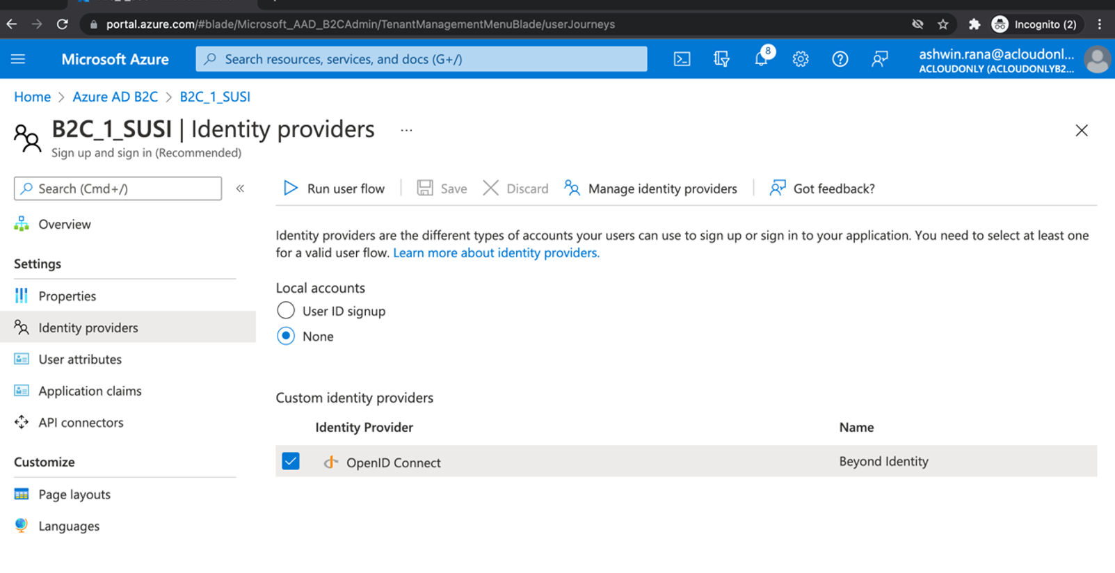 Section 4: Configure User Flow and Add Beyond Identity as IdP to a user flow