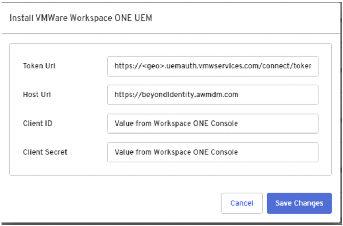 - Configure Workspace ONE Integration in the Beyond Identity Administrator Console