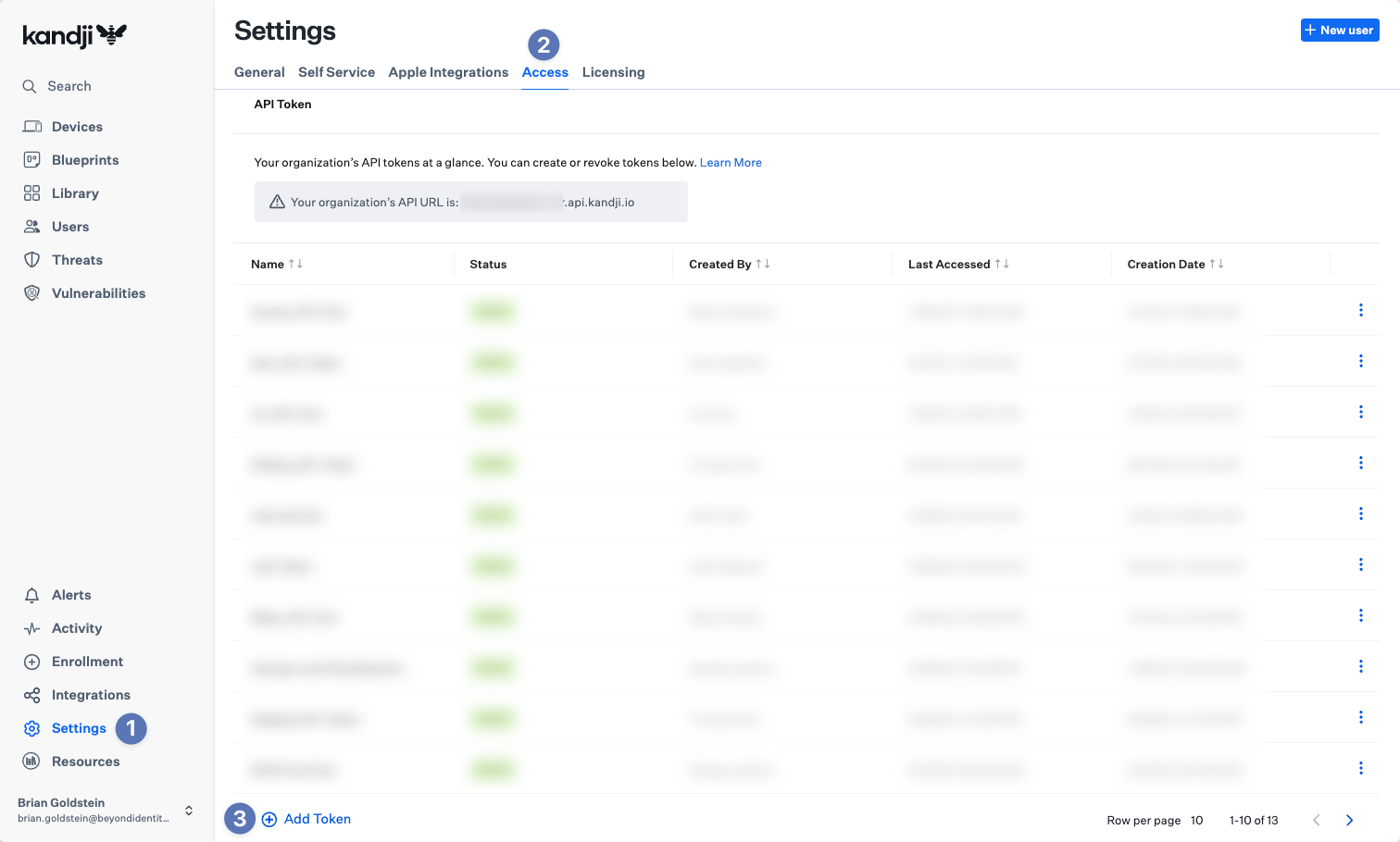 Kandji uses API tokens tied to the user that created it. We suggest creating a service user to create your Beyond Identity API token to prevent unexpected issues.