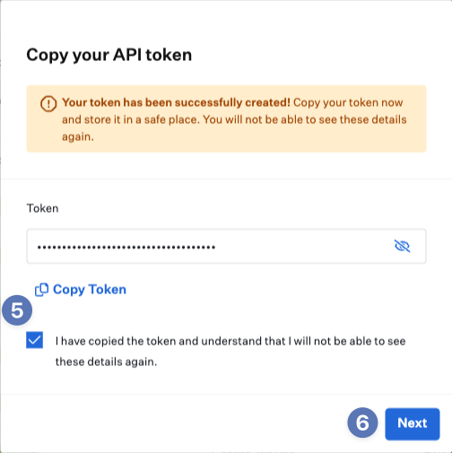 Make sure to save the token in a safe place. You will not be able to see it again - Click Next